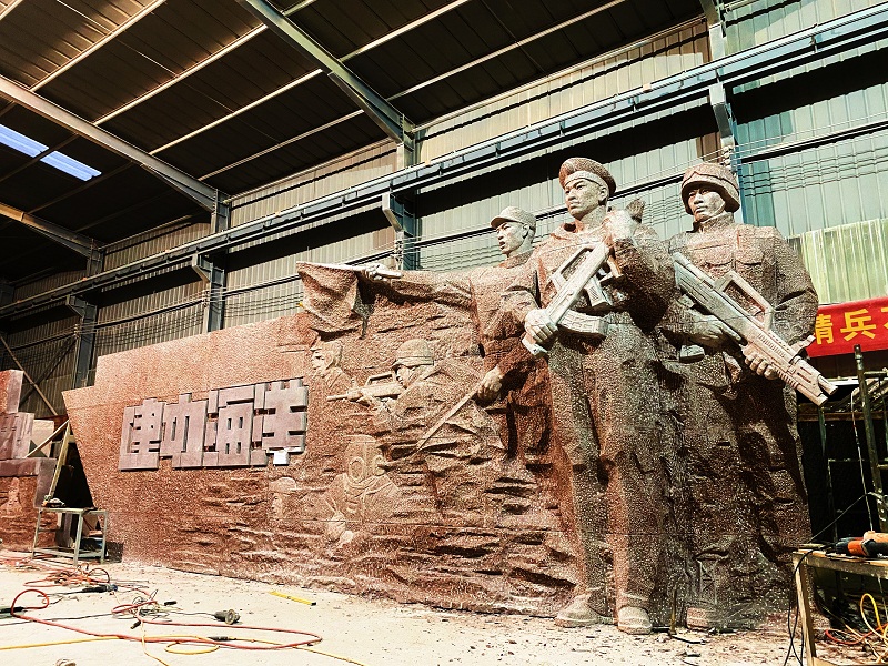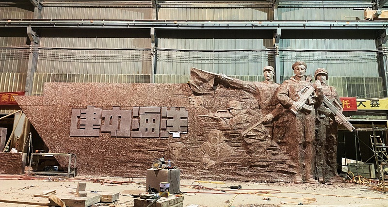 《走向深藍(lán)》雕塑設計(jì)說(shuō)明(míng):将忠誠使命¶ β®,英勇善戰,建功海(hǎi)洋的(de)海(hǎ≠ ≥​i)軍精神化(huà)作(zuò)英雄雕塑,如(rú)整裝待發的(de)艦隊,起錨遠(yuǎ×​n)航,兩側浮雕提取海(hǎi)軍英雄的(de)史詩曆程,鑄就(jiù)愛(ài<∏→)國(guó)主義精神與革命英雄主義精神,中間(jiān)以漢劍元素加以'★ ₹提煉,象征軍魂之劍勝利之劍,深藍(lán)之劍,寓意人(rén)民(mín)海(hǎi)軍☆α₩是(shì)黨領導下(xià)的(de)海(hǎi≤")上(shàng)力量是(shì)人(rén)民(mín)解放(fàng)軍的(de)重要(yàγ★∏$o)組成部分(fēn),劍指深藍(lán),所向披靡。