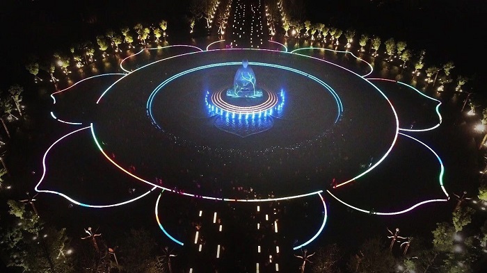圓形下(xià)沉廣場(chǎng)以一(yī)花(huā)五葉作(zuò)為(wèi'←♦)載體(tǐ),六祖思想為(wèi)核心,以洗心湖(÷↑hú)上(shàng)一(yī)座極簡抽象形态的(de)無相(xiδàng)藝術(shù)雕塑,與南(nán)廣場(chǎng)大(dà)門(→γ'mén)虛實交映,形成由虛入實,以實映虛的(de)複合景觀